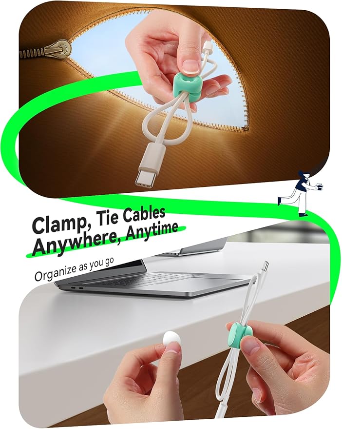 - 8 MM Wider Diameter Cable Slot: JOYROOM cable organizer features with 8mm diameter cable slot, the unique loop design cable aisle gently hugs cords while providing ample space for cable access. Take cords effortlessly for use, and simply release cord to retract back into slot. JOYROOM silicone cord clips have a spacious slot that can hold three regular cables or two thick cords at once. Made of soft silicone makes it prevents tangles while doubling as a flexible cable tie