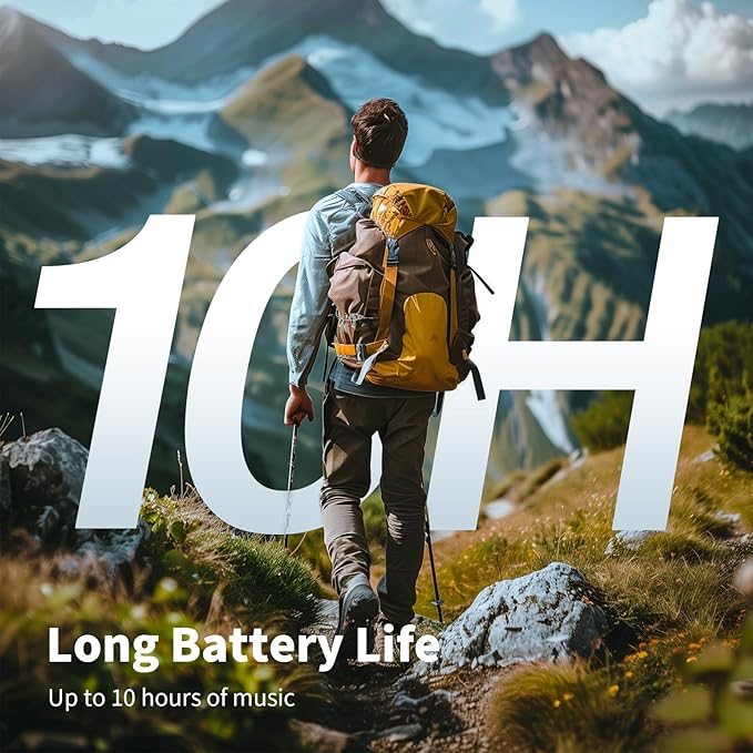 - [Stay Active in Any Weather] With up to 10 hours of music, calls, and podcasts on a single charge, these open ear headphones keep you going through your day. Featuring an IPX6 waterproof rating, they’re resistant to sweat and moisture, making them perfect for cycling and hiking. (Note: Not designed for swimming.)