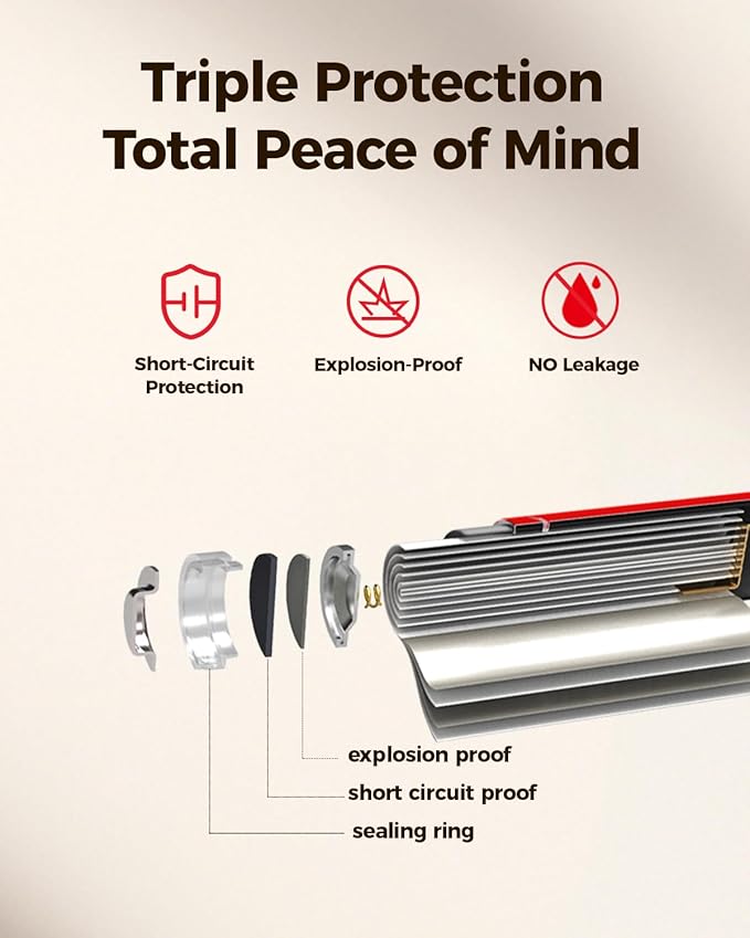 - 【Safety Comes First】Featuring 3-layer protection of leak-proof, explosion-proof valve, short-circuit protection, making them the best choice for high-end electronics