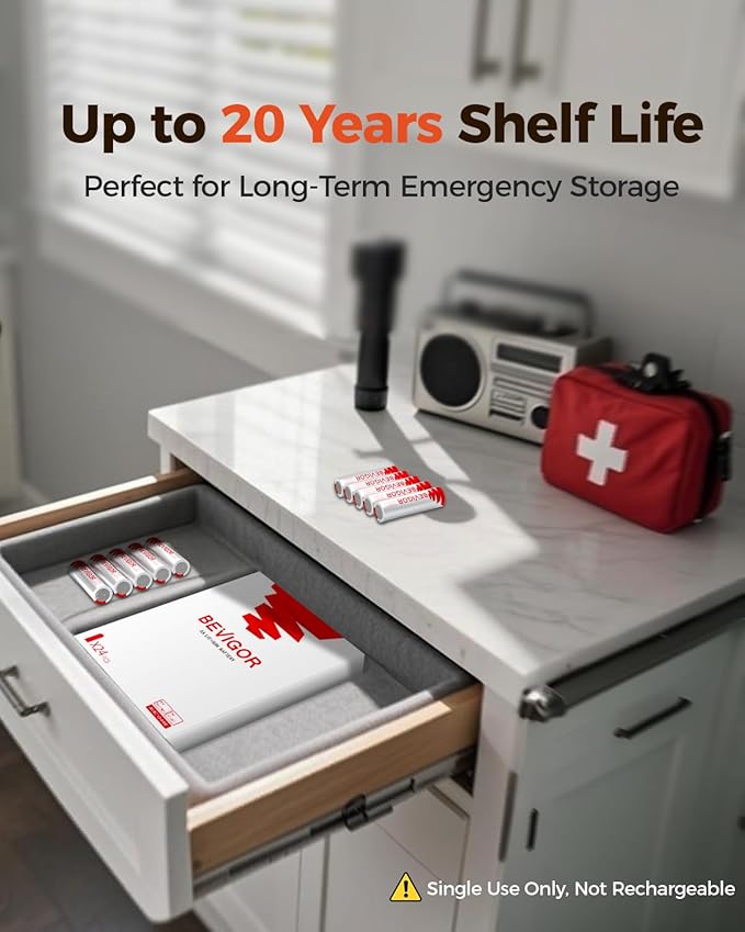 - 【20-Year Shelf Life】With up to 20 years of shelf life and less than 1%/year self-discharge rate, Bevigor double a lithium batteries are always ready whenever needed