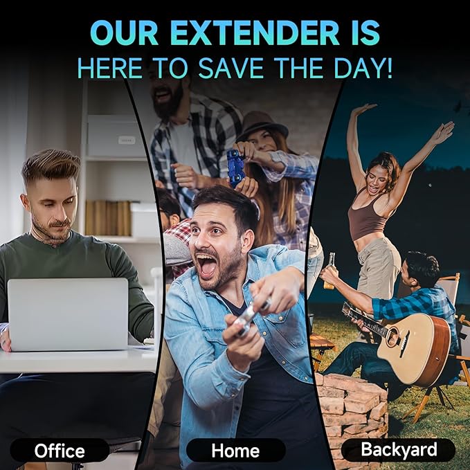- Bionic Chip & Long-Range Penetration: Powered by an advanced Bionic Chip and 4 high-gain antennas, this internet extender WiFi booster achieves 5X faster speeds. Maintain lag-free gaming on PS5/Xbox and buffer-free Zoom calls on your laptop, even through multi-story homes