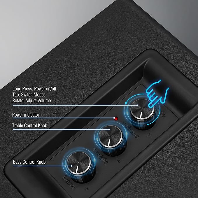 - Universal Connectivity: With Bluetooth 5.3, AUX/RCA, and USB-C inputs, it seamlessly connects to desktop PCs, laptops, turntables, TVs, phone, mixers, gaming consoles, and media players. Elevate your audio experience for music, gaming, movies, and podcasts with studio-grade sound transmission.