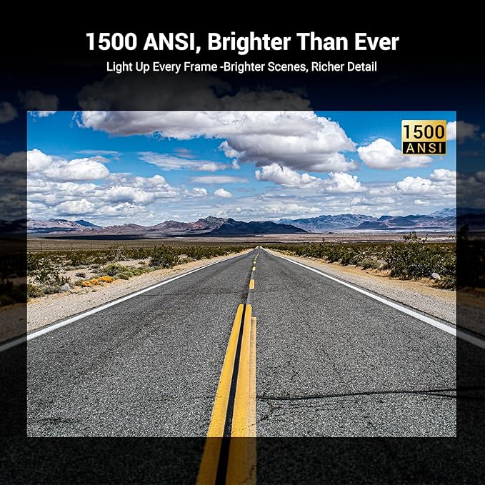 - 【1500 ANSI & 4K Support - Brighter and clearer picture quality】With 1500 ANSI brightness, the 4K projector delivers bright, sharp results even in rooms with ambient light. Utilizing a newly upgraded chip with 4k support technology, movie projector delivers vibrant colors and richer details, making every movie, game, or sporting event come alive and truly immersive.