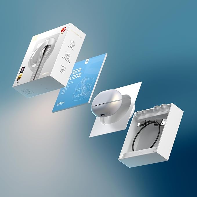 - 【Expansive Soundstage & Natural Vocal Performance】Break free from the "cramped" sound of ordinary earbuds. Air5 Pro Bluetooth earbuds are tuned to provide a wide, immersive soundstage where instruments are precisely located and clearly separated. Vocals remain transparent and natural, perfectly balanced against the accompaniment without being harsh or muffled, ensuring long-lasting listening comfort.