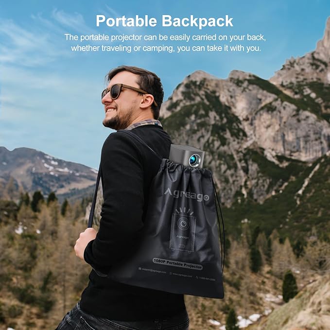 - Sleek Design & Ready for Any Occasion: Designed with a modern, compact look and comes with a handy drawstring carry bag—perfect for on-the-go fun. Whether it’s movie night in the backyard, RV camping, garage karaoke, or even yoga or online classes, this projector supports tabletop, ceiling, wall, and tripod mounting to fit your setup.