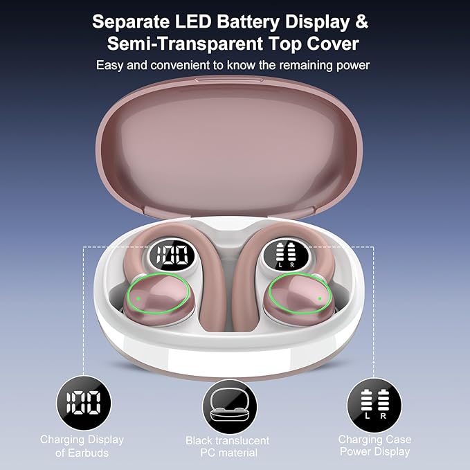 Wireless Earbuds, Bluetooth 5.3 Headphones Sport, Over Ear Buds With ENC Noise Cancelling Mic, 48H, Wireless Earphone With Earhooks, Stereo Deep Bass, IP7 Ear Buds for Workout Running, Rose Gold