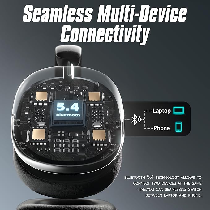 - 【Multipoint Connection】Connect to two devices simultaneously with Bluetooth 5.4 and instantly switch between them. Whether you're working on your laptop, or need to take a phone call, audio from your Bluetooth headphones will automatically play from the device you need to hear from