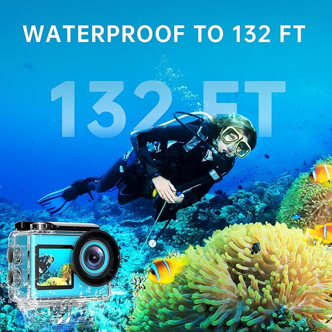 - UNDERWATER ADVENTURE READY: This underwater camera, with its rugged waterproof case, allows dives up to 132 feet, letting you capture underwater adventures without fear of damage. Perfect for water sports like snorkeling, surfing, diving, swimming, motorboating, kayaking, and rafting, it ensures you never miss a moment of your aquatic experiences