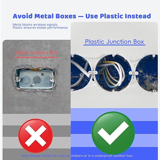 - ✅ 【IP65 Waterproof - For Indoor & Outdoor Use】 Safely install this waterproof switch in bathrooms, kitchens, garages, or on your outdoor patio. The IP65 rating protects against water splashes and dust. Ideal for controlling garage lights, garden lights, or anywhere you need a safe, wireless wall switch away from moisture