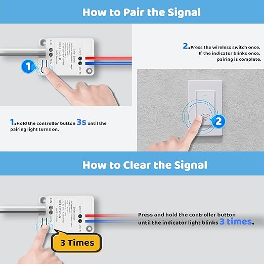 - ✅ 【Strong RF Signal & 330ft Range - Penetrates Walls & Floors】 Enjoy reliable remote control of your lights through walls and doors. With a 330ft range in open areas (100ft indoors), this RF light switch provides whole-home coverage. Control lights from the garage, garden, or bedroom without line-of-sight