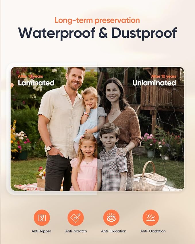 - 【No-Jam Technology for Hassle-Free Use】 The upgraded anti-jam system ensures smooth feeding and prevents pouch misalignment, reducing paper jams and protecting your important documents.