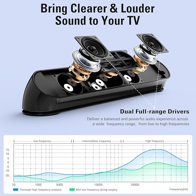 - 【Bluetooth-Enabled Versatility】Functioning as a bluetooth soundbar, it doubles as bluetooth speakers for tv, offering seamless wireless connectivity. Whether paired with a smart TV or a regular one, this soundbar for tv enhances convenience, fitting effortlessly into home improvement projects focused on audio upgrades