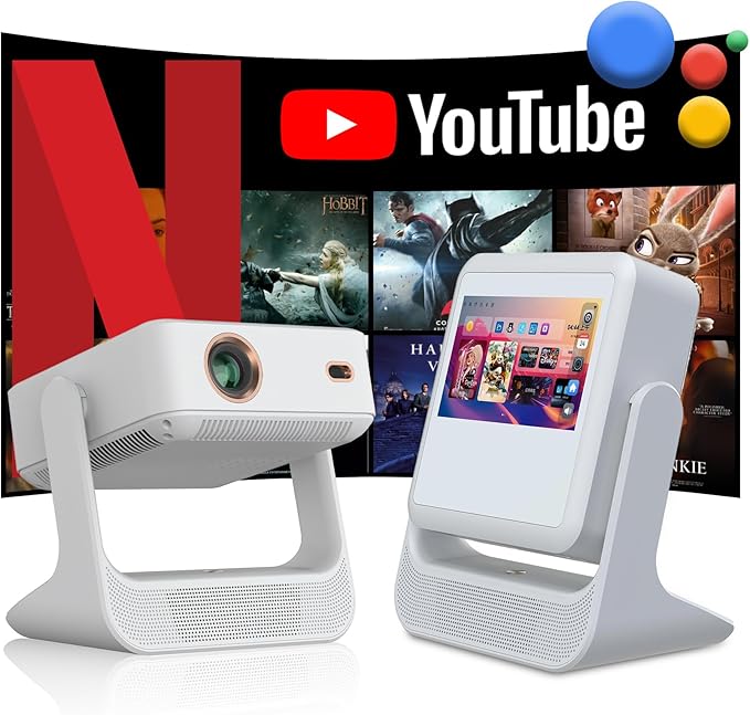 TouchScreen Smart Portable Projector, 4K Support Outdoor Projector with WiFi6 and Bluetooth, 800 ANSI 180° Rotatable,1000+ Apps, Auto Focus Keystone Movie Proyector for Home Theater/Outdoor/Gaming
