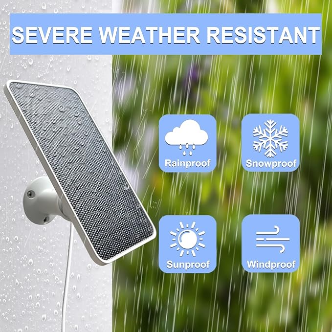 - 【Durable & Weatherproof】 Crafted with corrosion-resistant aluminum alloy and IP65 waterproofing, this design for arlo camera solar panel for outdoor camera withstands storms, snow, and extreme weather. Built to outperform standard panels with 8+ years of rust-free durability