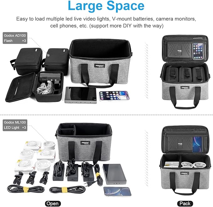 - 【FULLY CUSTOMIZABLE & MODULAR INTERIOR】Why settle for a fixed layout? The interior features numerous removable and repositionable foam dividers. You have the freedom to create completely customized compartments to perfectly and securely fit a wide range of equipment—from DSLRs and mirrorless cameras to drones, LED video lights, and action cameras—tailoring the space to your specific needs.