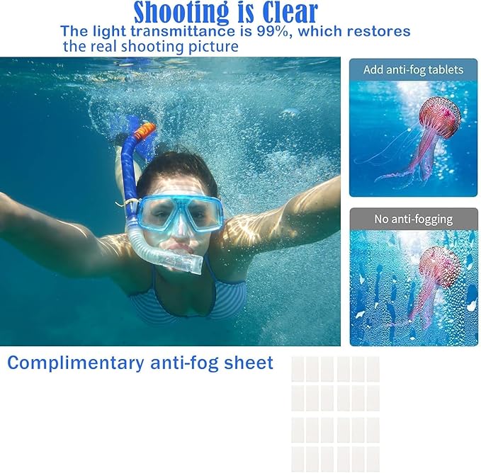 - Ultra-Clear Optical Glass Lenses: Experience unmatched clarity. High-transmission (98%+) tempered glass lenses deliver crystal-clear, undistorted video and images, capturing every underwater detail perfectly