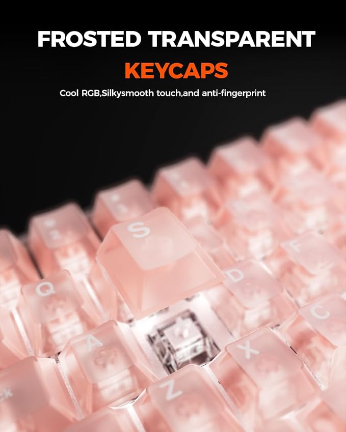 - Frosted Translucent Keyboard: COOL60 keyboard crafted from optical-grade PC material, the translucent casing and keycaps feature a hazy, mist-like texture, offering a softened, eye-comforting backlight with exceptional uniformity and reduced glare. The matte surface effectively resists smudges and fingerprints while ensuring a premium tactile experience.