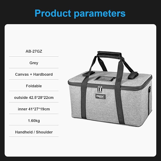 FOMITO AB-27 Foldable Camera Bag 16.73in x 11in x 8.66in Shockproof Case for DSLR, Gimbal, Drone Heavy-Duty Handle DIY liner