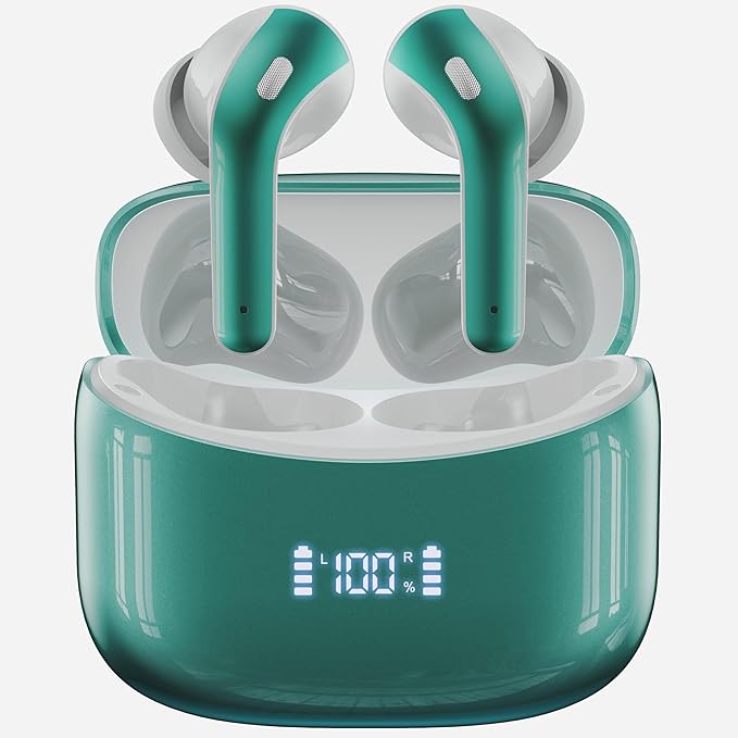 - 60H Playtime & Smart Dual LED Display:Stay powered all day with up to 6 hours of playtime per charge and a total of 60 hours using the compact charging case. The upgraded dual LED digital display lets you monitor the battery levels of both earbuds and the case in real time—no more guesswork. The case provides up to 5 full recharges, ensuring uninterrupted music, calls, or workouts no matter where you are.