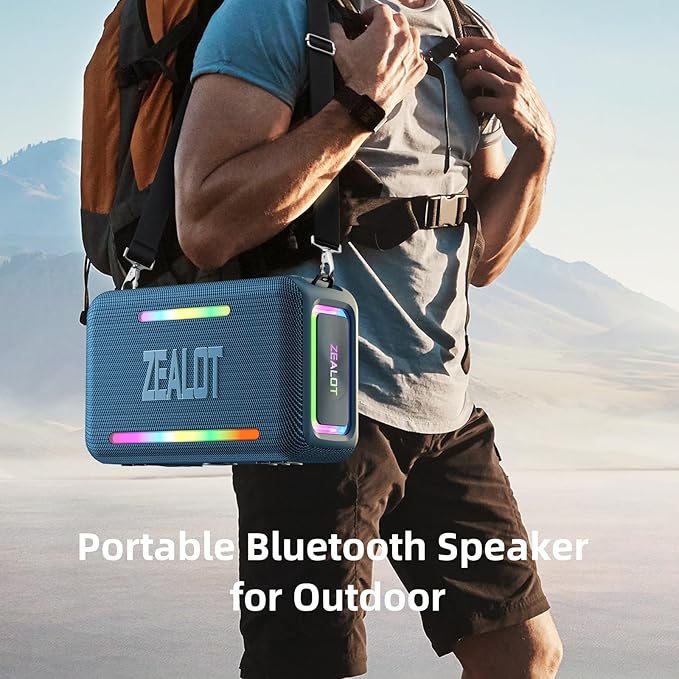 - 【IPX6 Waterproof Speaker】Zealot water proof Bluetooth speaker is IPX6-rated and very resistant to heavy sprays of water from all directions. It is ideal for outdoor activities such as camping, riding, boating trips, or beach trips.