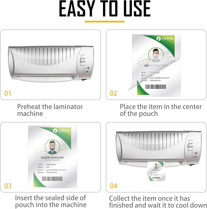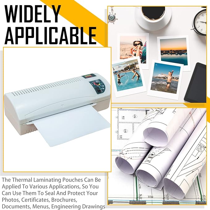 - Multiple Applications: our thermal laminating pouch is suitable for your documents, cards, artwork, photos, pictures, etc., with a flexible and stable surface, which can support long term service life