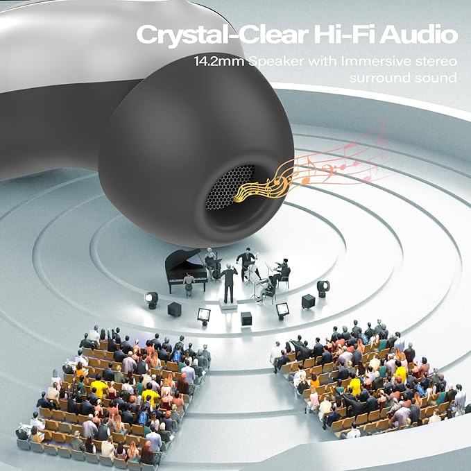 - Bluetooth 5.4 with Instant Auto-Pairing:Featuring the latest Bluetooth 5.4 chipset, the Bluetooth D20 Wireless headphones offers ultra-stable, low-latency connections. Enjoy instant one-step pairing—just open the case and the earbuds automatically connect to your last device. With strong anti-interference capabilities and a wireless range of up to 15 meters, you can move freely around your home or relax in bed without losing audio quality.