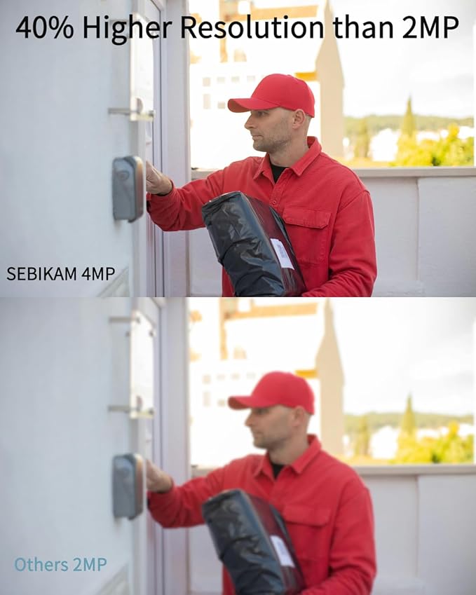 - [4MP Ultra HD Clarity with Smart Spotlight] Capture sharper details with 2560×1440p Ultra HD resolution, offering clearer images than standard 2MP surveillance cameras. A built-in spotlight switches on when motion is detected, providing full-color night vision, while infrared LEDs extend visibility up to 66ft. Perfect for front doors, garages, driveways, or backyard security