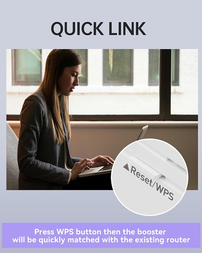 - Smart Placement WiFi Booster: Easily find the ideal location for your WiFi repeater using the visual signal indicator. Three solid lights indicate a strong connection, while two lights suggest a moderate signal—often due to being too far from the main router. For best performance, place the extender midway between your router and the area that needs better coverage. This WiFi booster expands your wireless network into every corner of your home, including the front porch, backyard, and garage.