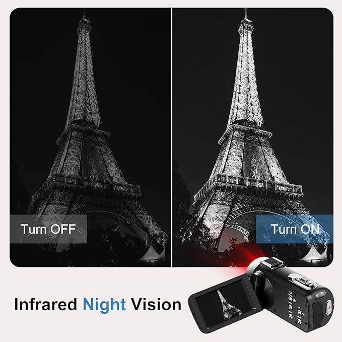 - 【IR Night Vision & SD Card】The video camera camcorder has an infrared night vision function that captures clear black and white images. For example, this camera 4K can perfectly capture every atmospheric or mysterious moment of the night when camping outdoors at night or indoors in low light. We also provide you with a 32G SD card. After you receive the camera, you can start recording every precious moment.