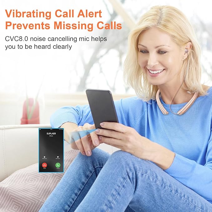 - ♫【IPX5 Sweatproof & Hands-free Calling】The sport Bluetooth headphones are IPX5 sweatproof, perfect for running, hiking, cycling, fitness, gym etc. Moreover, the neckband Bluetooth headphones will remind you of vibration when there is an incoming call, you will never miss any phone call even if you are in a noisy environment or exercising.