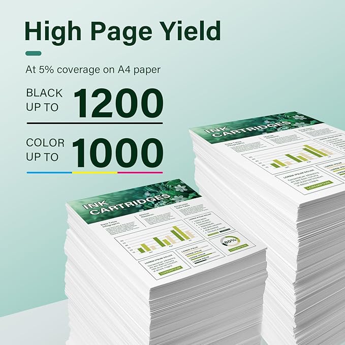 - High Page Yield: It yields up to 1,200 pages for each 910XL Black ink,1000 pages for each 910XL color ink,at 5% coverage (A4/letter)