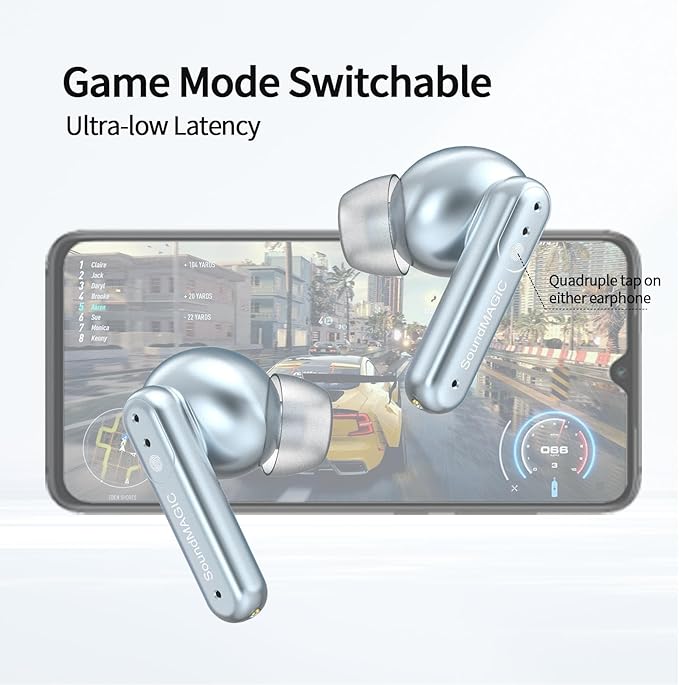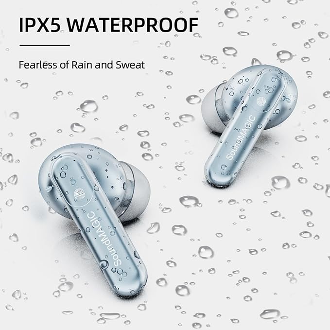 SoundMAGIC T80BT ANC True Wireless Earbuds with Hi-Res Audio,Hibrid Active Noise Cancelling, ENC Call Clarity, 20H Playtime, IPX5 Waterproof, Ultra-Comfy Fit for Sports/Work/Gaming (Blue)