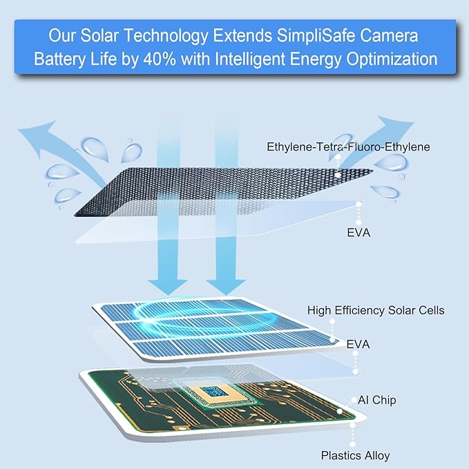 - 【Efficient Charging】Crafted from monocrystalline silicon and light, thin Ethylene-Tetra-Fluoro-Ethylene, our solar panel outperforms others by 13% in conversion efficiency and power output. Ensures continuous charging for your Arlo security camera during sunny and partially cloudy days.