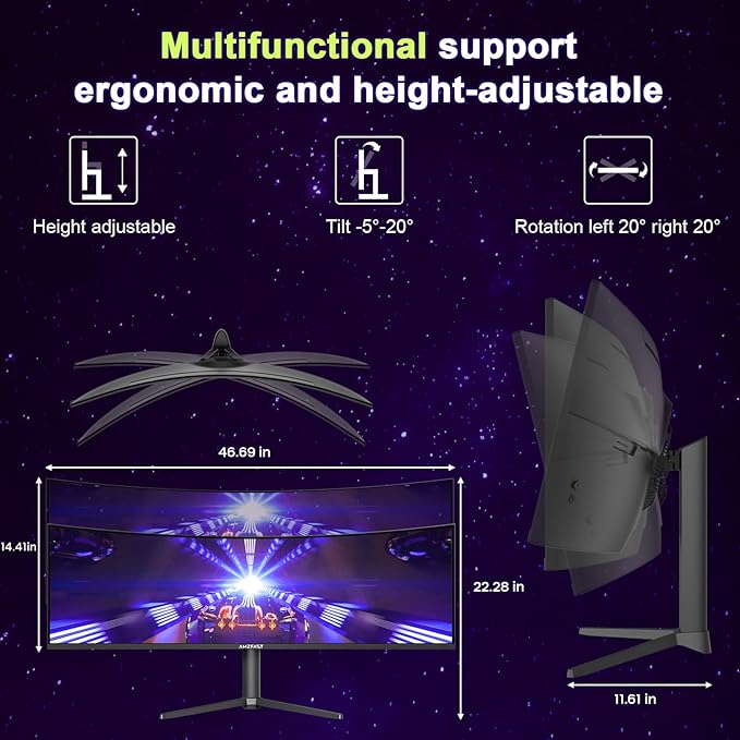 - 【49 Inch Dual QHD Ultrawide Vision】 Featuring 49 inch curved VA panel, this ultrawide monitor delivers a Dual QHD(5120x1440) resolution.The 178° wide viewing angle ensures minimal color shift from any angle, making it ideal for multiplayer gaming. The 1500R curvature wraps around your field of vision, allowing you to grasp the entire map.32:9 aspect ratio offering an unparalleled experience for FPS and RPG games alike.
