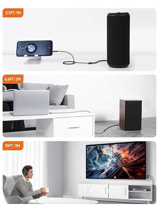 - 3.5mm to 2 RCA Cable: 3.5mm to rca audio cable connects perfectly for smartphones, MP3 player, tablet to Stereo Receiver, Speaker, Amplifier, TV, Car and other RCA-enabled devices, use it for outputting audio,enables you to enjoy Hi-Fi music on high-end devices