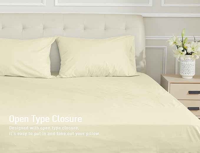 Sunflower King Pillowcases Set of 2, 100% Cotton King Size Pillow Cases 2, 20×40 inches Light Beige, Soft and Breathable