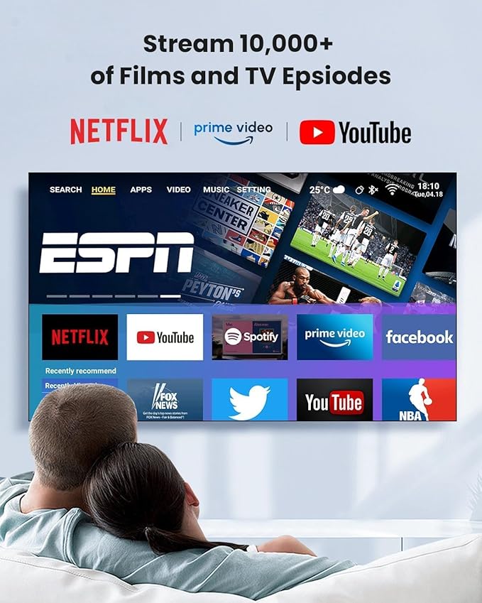 - [ Enjoy Netflix, YouTube, and More ] The A9T Smart Projector Android 11.0, the user-friendly interface offers smooth navigation and compatibility with over 8,000 apps, including Netflix, YouTube, and Prime Video for an ultimate viewing experience