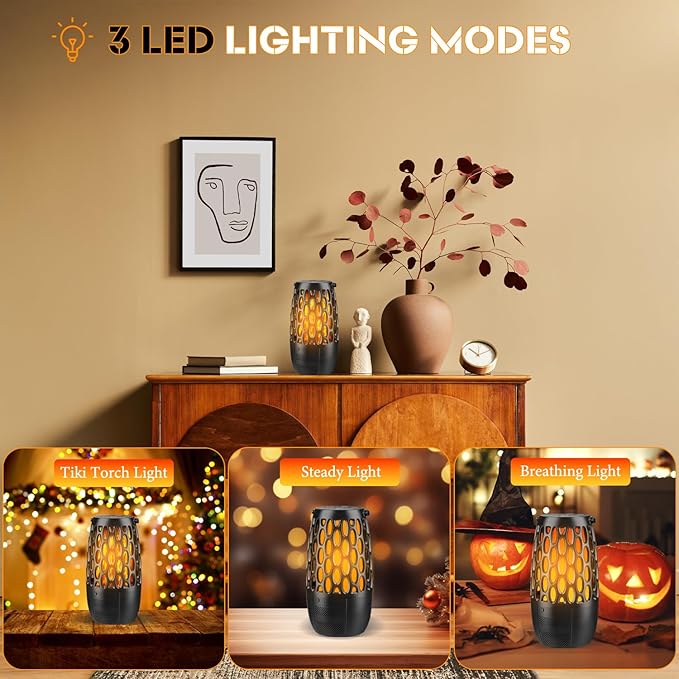 - 3-Mode LED Light Show to Match Your Mood: Set the ideal atmosphere with three adjustable LED lighting modes: flickering flame for a cozy campfire vibe, breathing light for relaxation, and steady amber for bright illumination. Easily adjust the light to suit any occasion, whether it’s a romantic dinner or an energetic outdoor party.