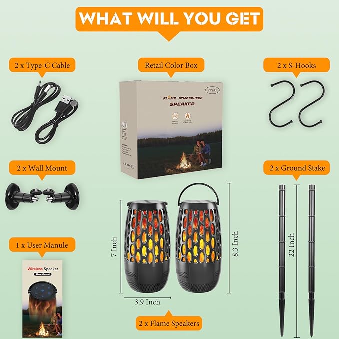 - Upgraded LED Atmosphere Light with 360° Coverage: Enjoy stunning 360° sound and mesmerizing LED light effects that create a premium music experience combined with warm illumination. Perfect for outdoor gatherings, patios, and garden parties, these speakers enhance your ambiance while offering high-quality audio for a full sensory experience.