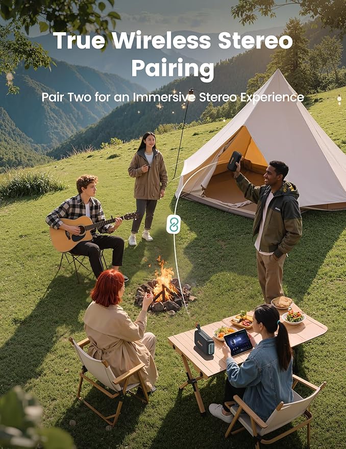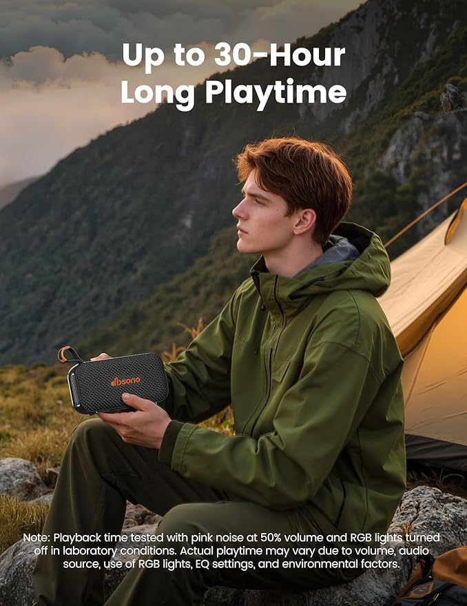 - All-Day Play and Adventure-Ready Durability β A single charge lasts up to 30 hours, keeping the music going through long days of travel, extensive hikes, or entire weekend camping trips. IPX5 rating provides reliable protection against unexpected rain, poolside splashes, or messy spills, making it your go-to companion for any outdoor activity where durability matters