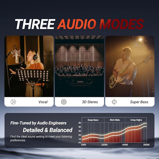 - 【Three Audio Sounds】Benefit from three sound effect modes of exclusive custom by BOGASING, which help you feel 3D Stereo, clear and undistorted vocals or powerful deep bass. Portable bluetooth equalizer speaker meet your listening preferences and provide you with more listening pleasure! !