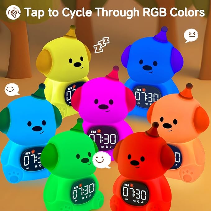 Alarm Clock for Kids with Night Light, Sleep Training Clock Time to Wake Clock, Rechargeable Silicone Light for Bedroom, Perfect Sleep Companion for Boys Girls,Dog