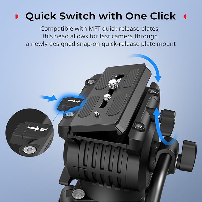 - Aluminum Alloy Tripod Video: Built with Aluminum Alloy legs in a 2-2-1 layout, this tripod video supports up to 8kg (18lbs) while weighing only 3.1kg (6.8lbs), which is deal for quick shooting and travel.