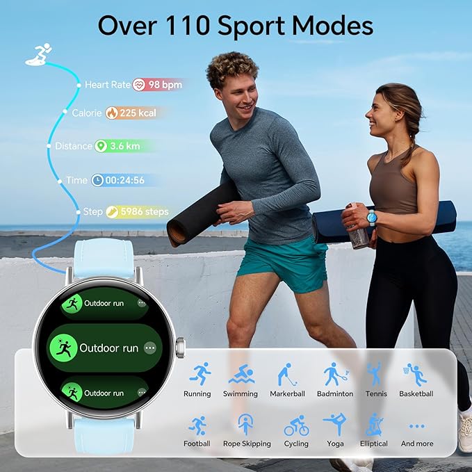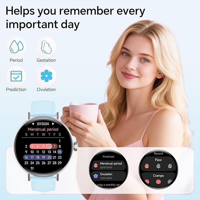 - [24/7 Health & Wellness Tracking] Monitor heart rate, blood oxygen (SpO2), stress levels, sleep stages, and women’s menstrual cycle tracking(not for medical). A comprehensive health monitoring smartwatch that provides detailed insights to help you maintain a balanced lifestyle.
