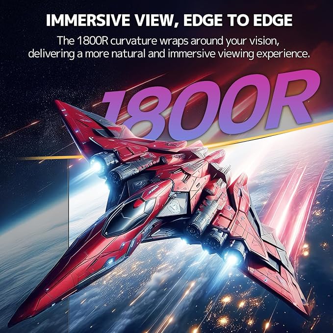 - 32Inch Curved Monitor: The 1800R curvature creates a wraparound field of view for deeper immersion, while the 178° wide viewing angle ensures consistent color and clarity from any position. Full HD 1920×1080 VA panel delivers rich contrast, vivid colors, and smooth visuals—ideal for gaming, streaming, and daily productivity