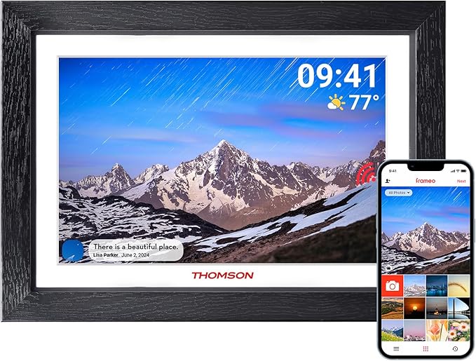 THOMSON Digital Picture Frame, Digital Photo Frame WiFi with 32 GB, HD IPS Touch Screen, Auto-Rotate, Slideshow, Share Photos/Videos from Phone by App (10.1Inch Wood)