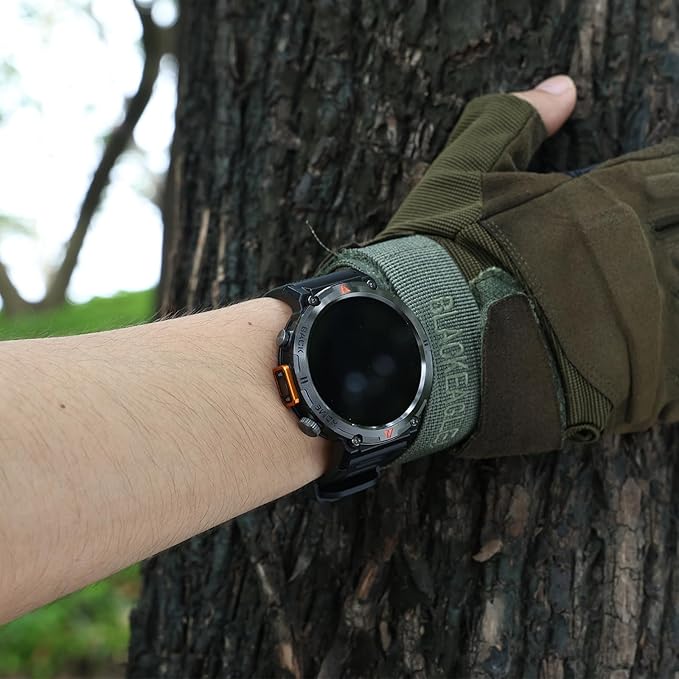 - 【Upgraded LED Flashlight & Compass】- LaNikar military smart watches for men are equipped with a high-brightness LED flashlight with three optional light modes: strong light mode, flash mode, and SOS mode. You can also manually adjust the three levels of brightness as needed, suitable for various scenarios. The tactical smart watches for men are also equipped with a compass function to help you easily navigate during outdoor activities. You can easily start any adventure, whether day or night.