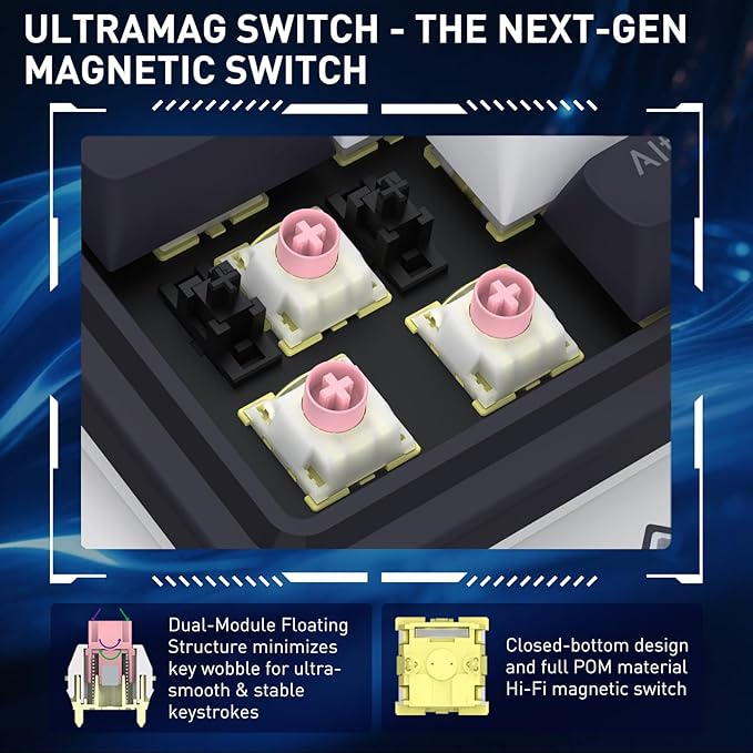 - THE BANGER UltraMag - The legendary next-gen UltraMag magnetic switch features an anti-wobble dual-module floating structure for unparalleled reliability & hyper-fast precision. Its full-POM construction with enclosed base delivers buttery-smooth keystrokes with crisp, Hi-Fi sound.