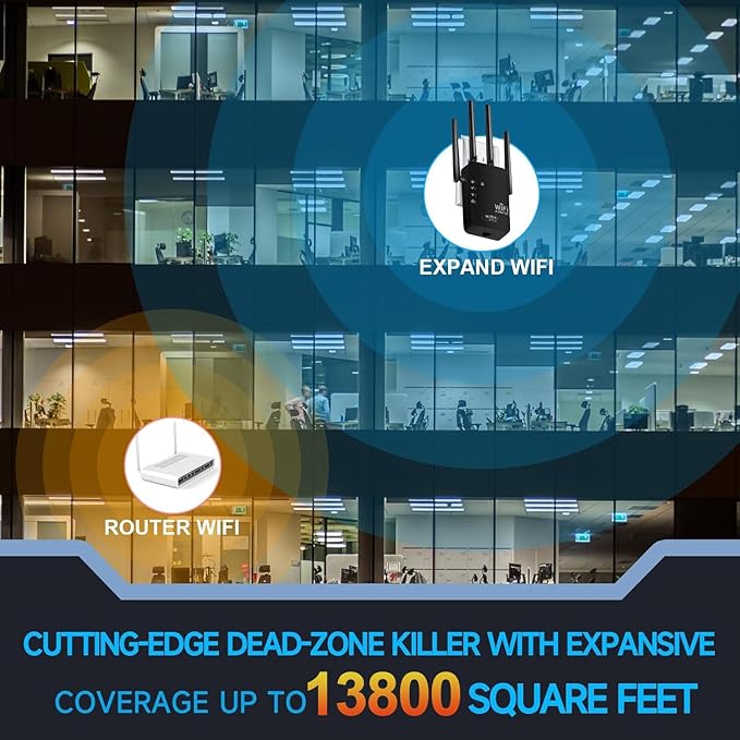 - 【Extend WiFi to Every Corner】: Covers up to 2500 sq.ft with 4 high-gain antennas, eliminating dead zones in bedrooms, basements, or yards. Enjoy stable WiFi anywhere at home