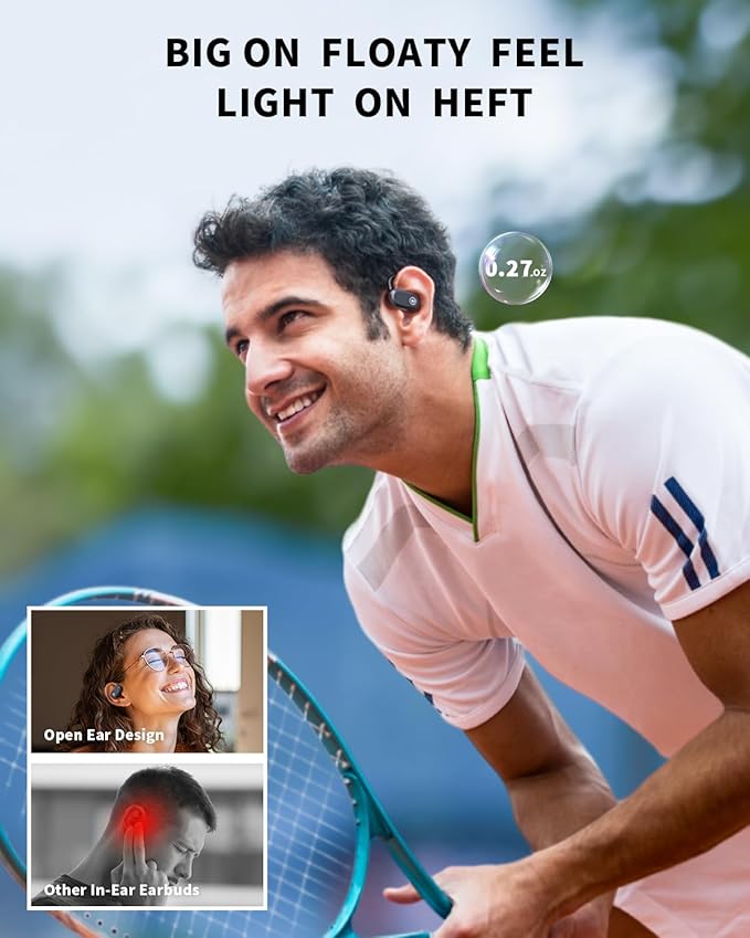 - 60 Hrs PLAYTIME & MULTIFUNCTIONAL BUTTONS - Say goodbye to frequent charging. The CT13 bone conduction headphones offer an impressive 60 hrs playtime, and each earbud can be used continuously for up to 12 hours. In addition, the external LED display allows you to know the remaining power of the charging case in real time, so you will never be without music on the go. With convenient physical buttons, you can adjust the volume, skip tracks, answer calls, and more just by pressing the buttons